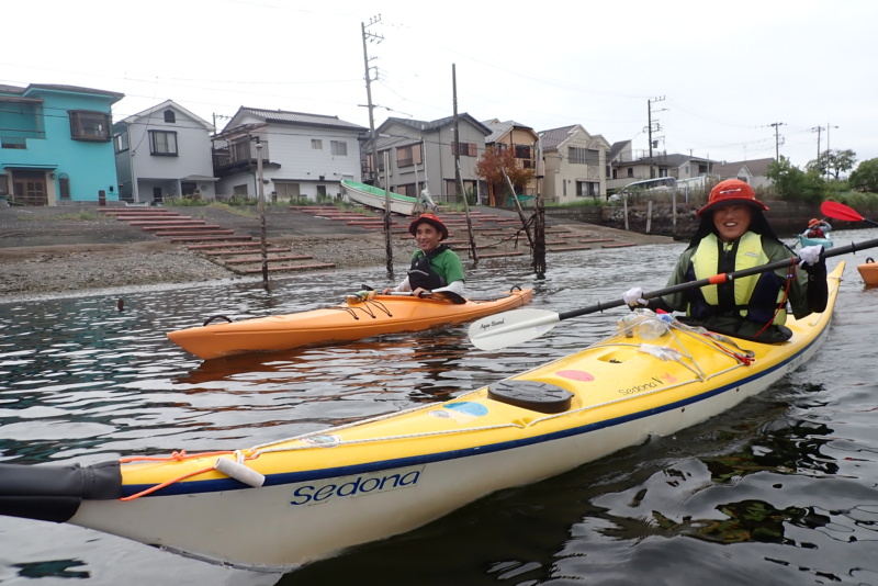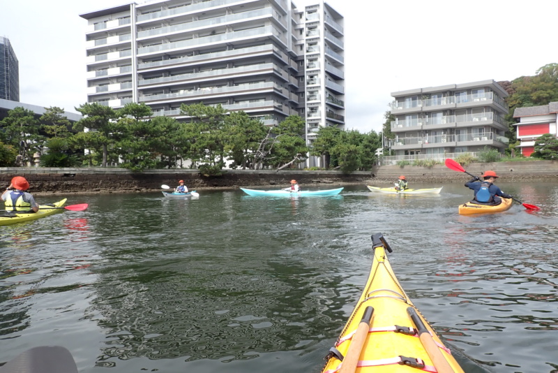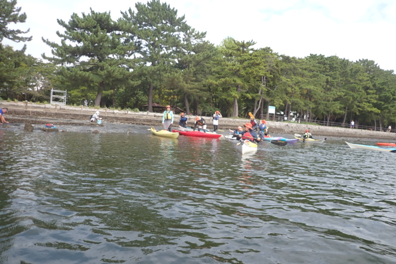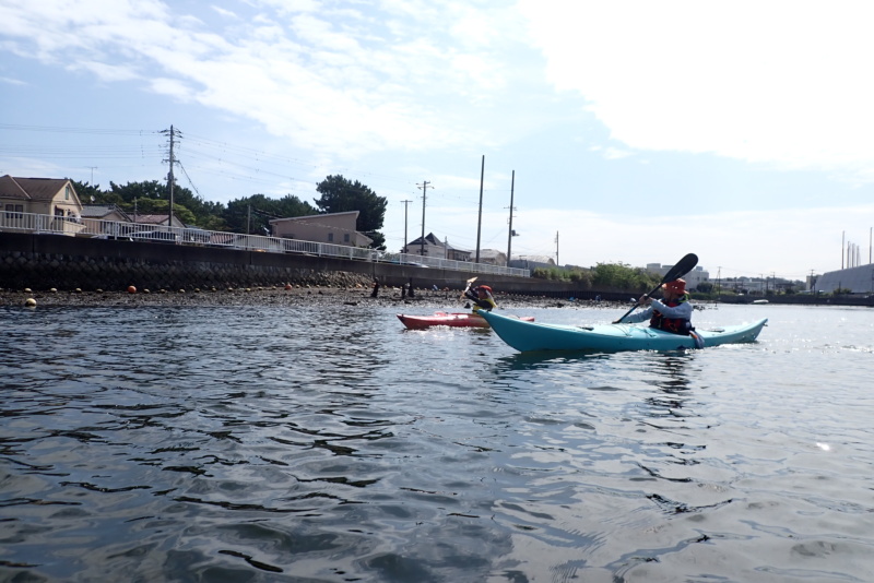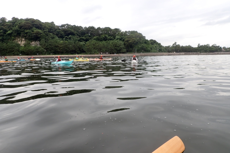 急に涼しくなりましたね…。すっかり秋です。今日は、どんより雲の中、気温は25℃程度の中での練習会となりました。太陽が出ていないと、なんだか盛り上がりませんね。風も波も全くない非常に穏やかなコンディションの中で実施しました。さて、今日は3組に分かれて練習です。基礎組、ショート組、ロング組です。私は基礎組に参加しました。基礎組は、野島公園→琵琶島→宮川→乙舳海岸というルート。今日は、非常に海水が濁っていましたが、小魚の群れが沢山泳いでおり、カヤックを漕ぐと、目の前を弧を描くように何匹も飛び跳ねていました。子供達も大喜びです。うまく捕まえてた子供もいました。すごいです。最後は、みんなで水遊び&基礎漕ぎ練習&レスキュー練習です。基礎漕ぎは、ドローイングやスカーリングなどの横漕ぎをメイン。感覚を掴むまで、結構時間がかかるので、みんなでゆっくり練習です。とはいっても、少し気を抜くと、沈してしまうので、緊張感のある練習となりました。