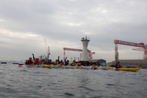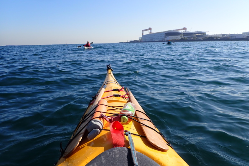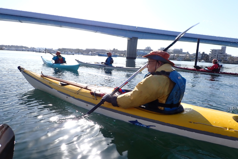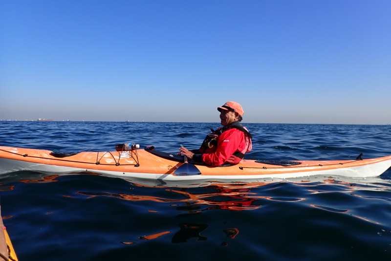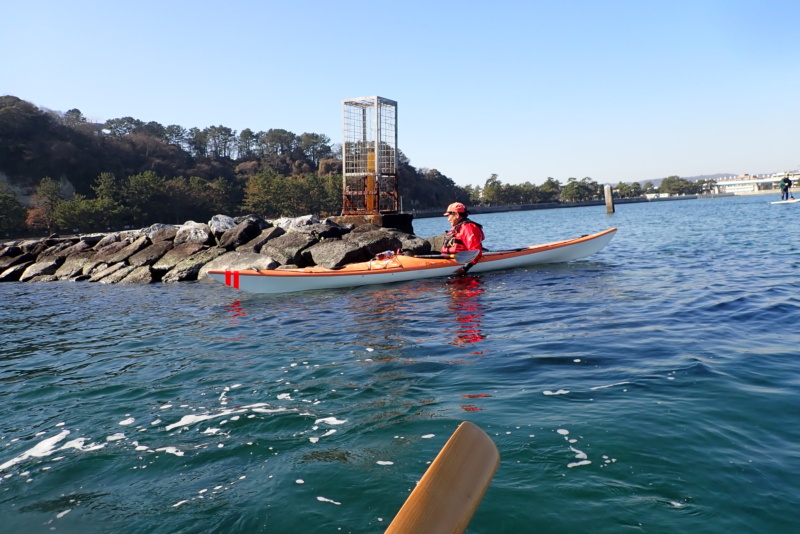 みなさま、ちょっと遅いご挨拶になってしまいましたが、新年あけましておめでとうございます!今日は、今年のクラブの漕ぎ初めの日です。新年を迎えてから寒い日や風が強い日が続いていましたが、今日はポカポカ陽気で、ほぼ無風、海は凪という恵まれたコンディションで、漕ぎ初めとしては最高でした。水温は冷たいですが、漕いでいると丁度良いくらいでしたね。今日はショート、ロングの2組に分かれて練習会を実施しました。最初はみんなで琵琶島の神社へお参りです。その後、ショート組は野島⇔海の公園往復。海の公園で「どんど焼き」があったので、お祭りへ。ロング組は野島⇔白灯台往復&ロール練習でした。私はロング組へ参加しました。本当にポカポカ陽気でしたので、汗かきながら漕いじゃいました。かいた汗は、ロールで流しました(笑)水が冷たいので、頭キンキンになりましたが、年初めのロール練習は、最高に楽しかったです。最後は、ショート組と合流して、今日の練習会を無事に終わりました。