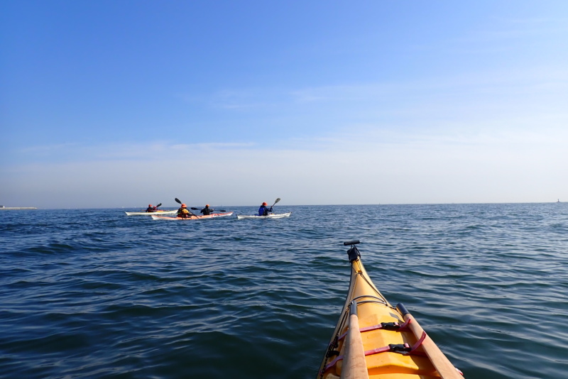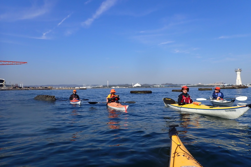 春の陽気を感じるようになってきましたね。花粉もすごいですけど…(笑)。さて、今日は、クラブの練習会を支えて頂いているボランティアリーダーメンバーのみの練習会でした。気温は20℃、風なし、波なし、晴れ。最高のコンディションです。海水はちょっぴり冷たかったですが、漕いでいると暑くなるので、丁度良い感じでした。リーダーメンバーで、野島→白灯台→赤灯台→白灯台→八景島周回→野島のコースで軽く汗を流しました。非常に気持ち良かったです。海の上は、花粉も少なく、アレルギーを持っている私にとっては気分最高です。陸に上がった途端、ダルダルになっちゃいますけど…。まだ水温は低いのですが、練習会の最後には、セルフレスキュー練習を行いました。皆、少しずつ自分でも上達していることが実感できたようで、充実した練習会になりました。