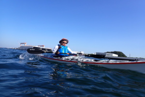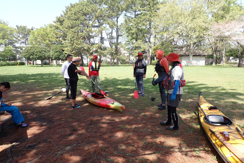 今日は2026年度の最初の練習会です。春なので、少し肌寒い….ではなく、気温が25℃前後ともう初夏の暖かさでした。むしろ暑い…。太陽も出ていて、風もなく、波もなく、非常に穏やかなコンディションでした。今日は、3組で練習開始です。ロングツアー、ショートツアー、バラエティの3組です。私はバラエティへ参加。バラエティは今年から新しくできたクラスで、基礎もやれば水遊びもやるという感じで、幅広くカヤックで「遊ぶ」ことを目的としています。今日は、新規会員の方も多かったため、平潟湾内での基礎練習が中心でした。平潟湾内は、非常に穏やかな状態で、湖かと思うくらい静かでしたね。初めて練習される方々には、最適な日だったと思います。琵琶島前での集合写真も無事に撮影できました。