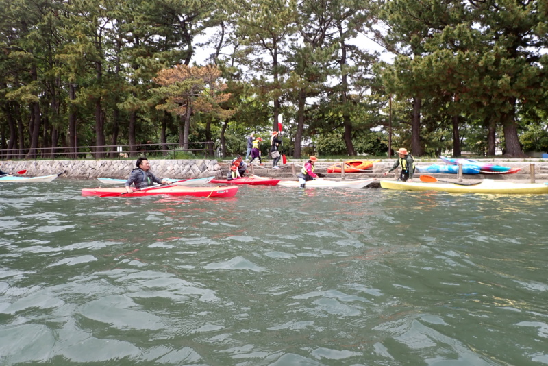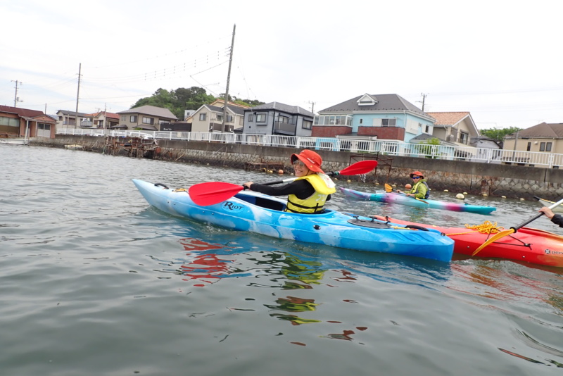 今日は肌寒い気温の中で練習会となりました。曇りで日差しが弱く、気温は19℃前後、北風が4~5m/sというコンディションです。さて、今日は2組で練習会を実施。バラエティクラスとツアークラスです。私はバラエティクラスへ参加しました。バラエティクラスと言いながらも、リーダー含めると20名ほどのグループです。今年から加入された方や、クラブの子供達が多く参加され、なんだかほんとにバラエティに富んだクラスとなりました。平潟湾内をゆっくり漕いだのですが、風はちょっぴり感じましたね。波はほとんどありません。私は、カメラを構えて漕いでいたら、なぜか沈しちゃいました。うっかりです。びしょびしょになったので、北風が寒かった….。油断すると駄目ですね(笑)。新規加入の方がも子供達も、非常にバラエティクラスを楽しまれておりました。今年は(も?)盛り上がりそうです。