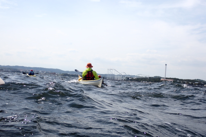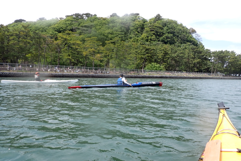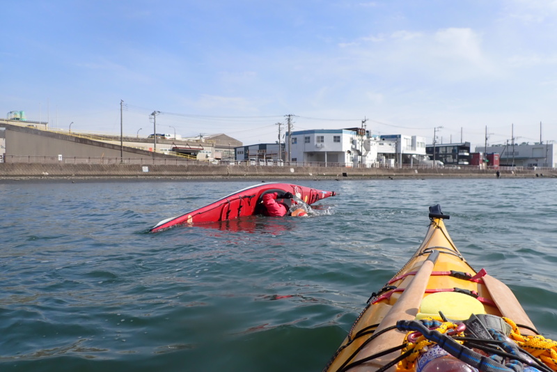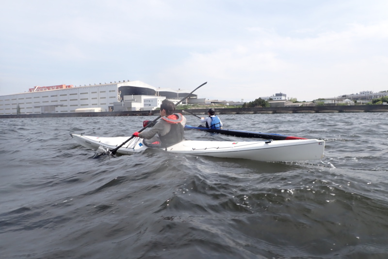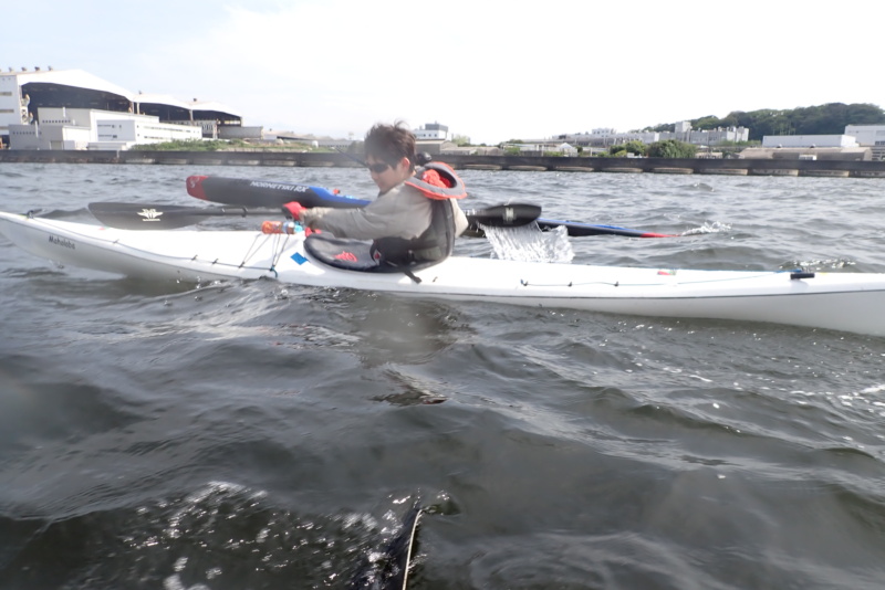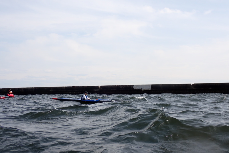 先週に引き続き、今日の午後はサーフスキーの練習サポートを行いました。先週よりも波と風が強く、八景の海の独特な「三角波」が大小様々に発生。めちゃくちゃ漕ぎにくいコンディションでしたね。風もあったため、波と風で体のバランスを取るのが難しい…。でも午前と違い陽射しが出てきたのはラッキーでした。所かまわず発生する三角波に、サーフスキーを練習していたメンバーも苦労していましたが、一度も落ちることなく、難なく漕いでいたのには驚きです。我々シーカヤック組は、ほぼ無言で必死に漕いでいたのに…。そんなコンディションの中で、野島から白灯台方面、および、海の公園までを何回か往復する練習を行いました。ほんとに疲れました….が、こんな中でチカラ一杯漕ぐ練習は、ふだんあまりやらないため、(我々が)良い練習になったような気がします。